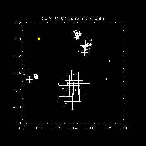 | <a> = 45.82 (AU) | V = 23.3 (V2 = 24.3) | Uncertainty = 0.2 (arcsec) |