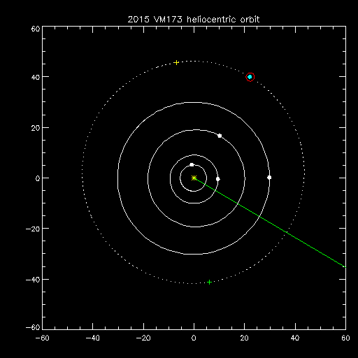 | <a> = 43.98 (AU) | V = 23.0 (V2 = 23.9) | Uncertainty = 0.1 (arcsec) |
