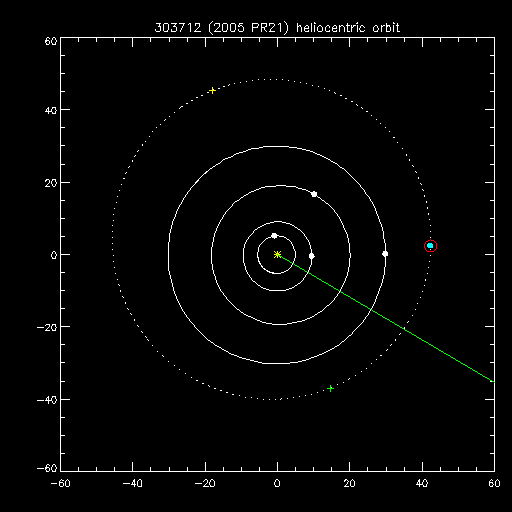 | <a> = 44.22 (AU) | V = 22.9 (V2 = 24.4) | Uncertainty = 0.1 (arcsec) |