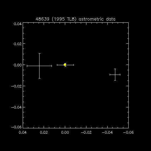 | <a> = 52.59 (AU) | V = 21.9 (V2 = 23.8) | Uncertainty = 0.1 (arcsec) |