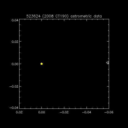| Observation time (UTC) | Observatory/Instrument | RA | DEC | Δ (AU) | Δx (arcsec) | Δx error | Δy (arcsec) | Δy error |